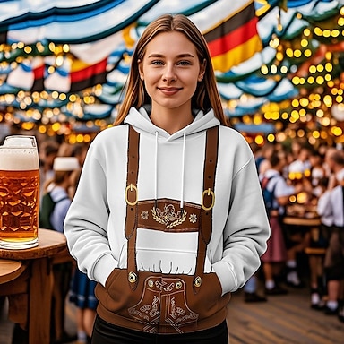 Kapuzensweatshirt Druck Lässig Bayerisch Bischofsärmel Fronttasche Grafik für Damen Erwachsene 3D-Druck für Karneval Oktoberfestbier Urlaub Party