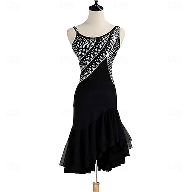 Tanz Salsa Latein Tanzkleid Kristall / Strass Rüschen Damen Performance ärmellos Spandex Spitze