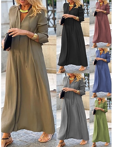 Damen Maxikleid Hemdblusenkleid Freizeitkleid Elegant Mode Modern Outdoor Urlaub Ausgehen Lässiger Schnitt Einfach Langarm V Ausschnitt Schwarz Rote Königsblau Braun Frühling Herbst