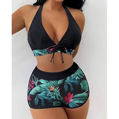 Damen Standard Surfing Tankinis & Bikinis Neckholder-Bikini-Oberteil Badeanzug Tropisch Offener Rücken UV Schutz Elastisch Ärmellos Bademode Surfen Tauchen Schwimmen Sommer
