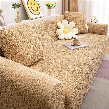 Seersucker-Sofabezug für 1-5-Sitzer, Stretch-Couchbezug, weicher, strukturierter Luftpolsterstoff, rutschfest &waschbarer Sofaschoner