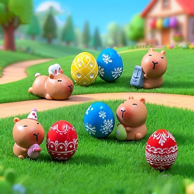 9 Osterfiguren von Wasserschweinen mit Ostereiern, niedliche Mini-Tierfiguren aus Kunstharz, ideal als Ostergeschenk, für Etageren oder als Schreibtischdekoration. &Feengarten-Ornamente