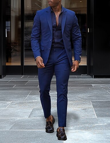 Herren Geschäft Lässig Anzüge Gekerbtes Revers Königliches Blau Mode Täglich Einfarbig Standard Passform 2-teilig Einreihige Zwei-Knopf-Jacke