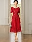 A-Linie Tee-Länge Partykleid Cocktailkleid Kurzarm V Ausschnitt Elegant Formell Hochzeitsgast Chiffon Spitze Brautmutterkleid mit Applikationen Kristallbrosche