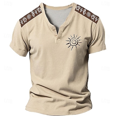 Herren Retro Ethnisch T Shirt Henley Hemd T-Shirt Kurzarm Designer Basic Ethnisch Outdoor Lässig Täglich Sommer Khaki Henley Henley T-Shirt