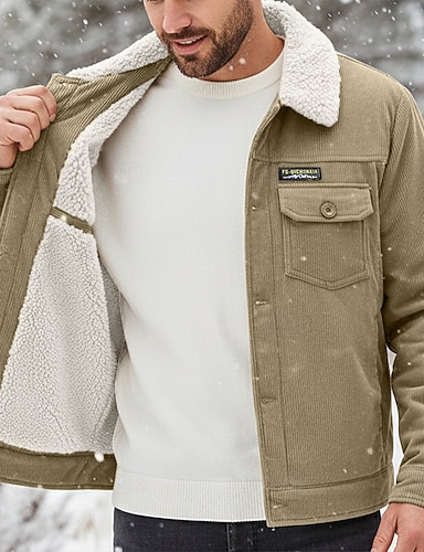 Herren Winterjacke Cordjacke Wintermantel Sherpa Alltagskleidung Casual Windundurchlässig Warm Klassicher Stil Herbst Winter Feste Farbe Vintage-Retro Standard Kaki Armeegrün Kaffee Grau Jacken