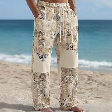 Herren Geometrisch Farbblock Ethnisch Hose Baggy-Hosen Freizeithose Mittlere Taille Boho Vintage-Retro Heim Outdoor Urlaub Elastischer Kordelzug in der Taille Leinenähnliche Hose mit Taschen Sommer