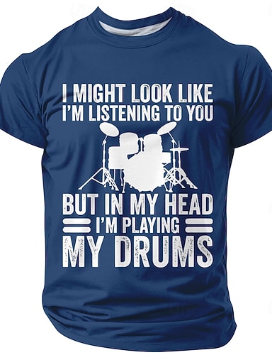 Herren Musik Trommel T Shirt Kurzarm T-Shirt 3D-Druck Rundhalsausschnitt Hemd Mode Lässig Lässig Täglich Party Blau Schwarz Rote Sommer Frühling Bekleidung S M L XL XXL XXXL