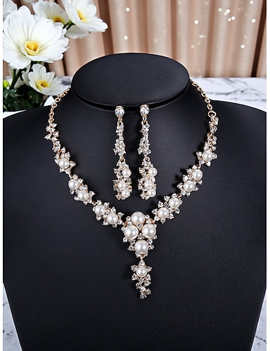 Damen Perlen- und Strass-Halsketten-Ohrring-Set, eleganter Vintage-Schmuck für Gatsby-Bälle, Hochzeiten &Abendpartys