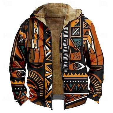 Herren Grafik Böhmische Kapuzensweatshirt Jacke Mode Ethnisch Lässig Langarm Mit Kapuze Outdoor Sport im Freien Ausgehen Hellbraun Dunkelorange Gelb Blau Orange Tasche Druck Fleece Winter Designer S