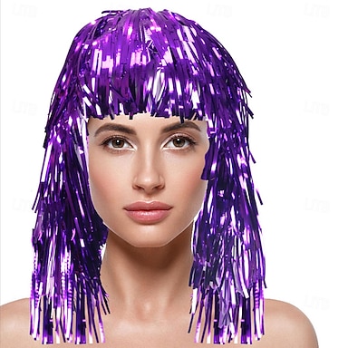 Karnevalsperücke 2026 Lila Lockig Mittellang Synthetische Festivalperücke Karneval Parade Cosplay-Kostümfrisur für Damen
