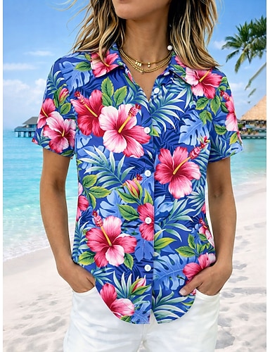 Damenhemd Kurzarm Floral Grafik Vintage Tropisch Modisches Hemd Kragen Reguläre Tops Alltagsblau Gelb Pink Sommer Frühling