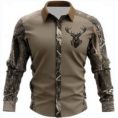 Herren Tarnung Rentier Hemd Knopfhemd Langarm Vintage-Retro Outdoor Campen und Wandern Jagd Frühling Herbst Umlegekragen 3D-Druck Leinenähnliches Hemd Cachi scuro Tarnung Khaki Khaki