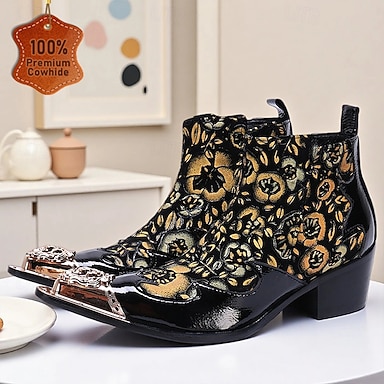 Verzierte Chelsea Boots für Herren – schwarz & gold, dekorativ und unverwechselbar, perfekt für modische Anlässe