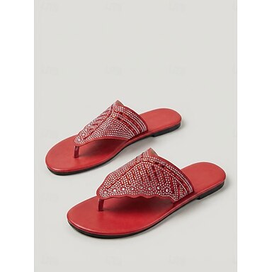 Elegante rote Strass-Sandalen für Damen – Zehentrenner-Stil für den Urlaub &Resort-Partyschuhe