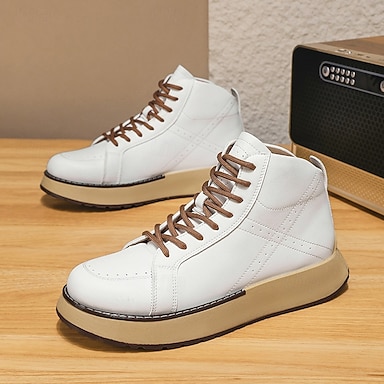 Herren High-Top-Sneaker aus Kunstleder – handgenähte weiße Schnürschuhe mit Schnallendetail und strapazierfähiger Sohle für den lässigen und urbanen Look