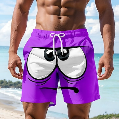 Herren 3D Zeichentrick Lächelndes Gesicht Große Augen Badehosen Badeshorts Boardshorts Mittlere Taille Lustig Outdoor Urlaub Alltagskleidung Seitentaschen Netzfutter Elastischer Kordelzug in der