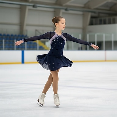 Eiskunstlaufkleid Mädchen Eislaufen Kleid Violett Marineblau Schwarz Patchwork Offener Rücken Hohe Elastizität Training Wettbewerb Eiskunstlaufkleidung Klassisch Kristall / Strass Langarm Eislaufen