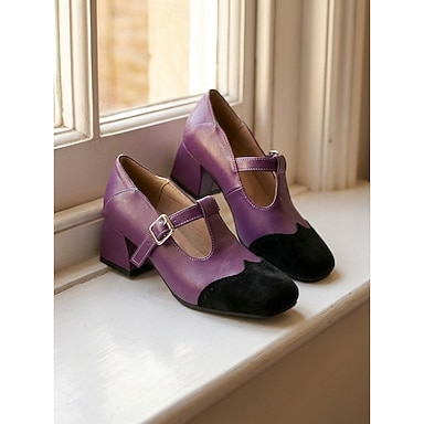 Retro-Mary-Janes im Stil der 1950er-Jahre – elegante, zweifarbige Pumps in Rot und Schwarz mit Flügelkappe und markantem Blockabsatz, perfekt für Vintage-Partys und das Büro. &Swing-Tanz