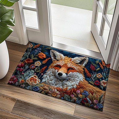Flurläufer mit Pflanzen- und Blumenmuster, Flanellstoff, bedruckt, rutschfest, weich, Bodenmatte für Zuhause, Eingangsbereich, Badezimmer