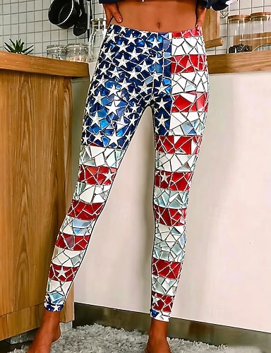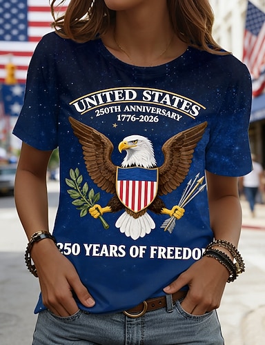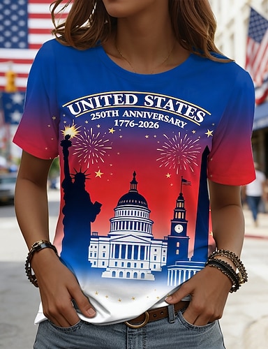 Amerikanischer Unabhängigkeitstag Damen T Shirt T-Shirt Druck Grafik Stilvoll Klassisch Lässig Kurzarm Rundhalsausschnitt Rundhals Normale Oberteile Täglich Ausgehen Wochenende Blau Schwarz Weiß Rote