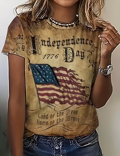 Amerikanischer Unabhängigkeitstag Damen T Shirt Druck Grafik Flagge Buchstabe Vintage Stilvoll Klassisch Kurzarm Rundhalsausschnitt Normale Oberteile Täglich Blau Schwarz Rote Grün Beige Sommer