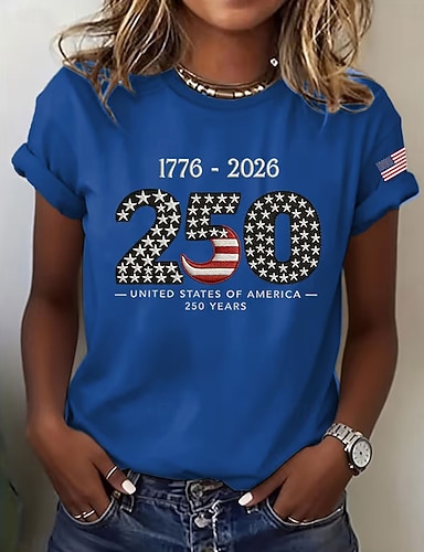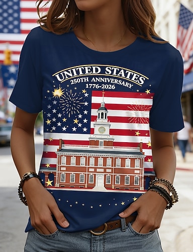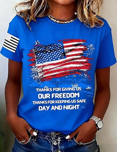 Amerikanischer Unabhängigkeitstag Damen T Shirt Druck Grafik Buchstabe Amerikanische Flagge Stilvoll Klassisch Lässig Kurzarm Rundhalsausschnitt Normale Oberteile Täglich Blau Schwarz Weiß Rote