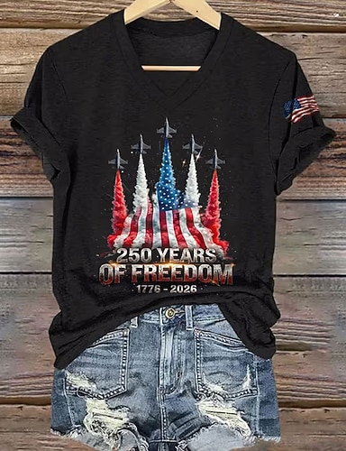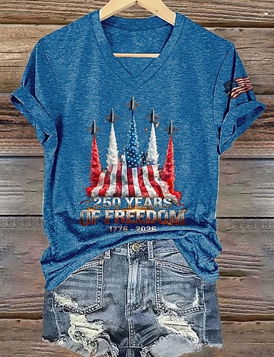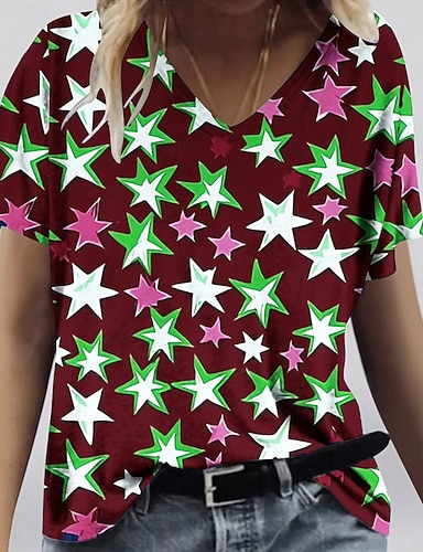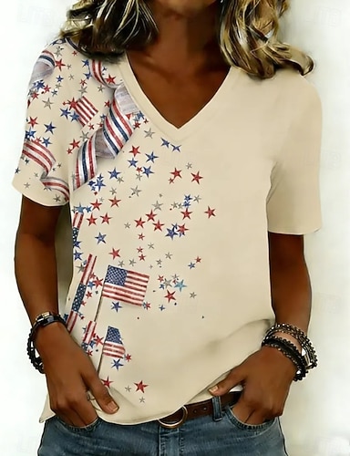 Amerikanischer Unabhängigkeitstag Damen T Shirt Druck Grafik Amerikanische Flagge Vintage Stilvoll Klassisch Kurzarm V Ausschnitt Normale Oberteile Täglich Blau Schwarz Rote Grün Sommer Frühling