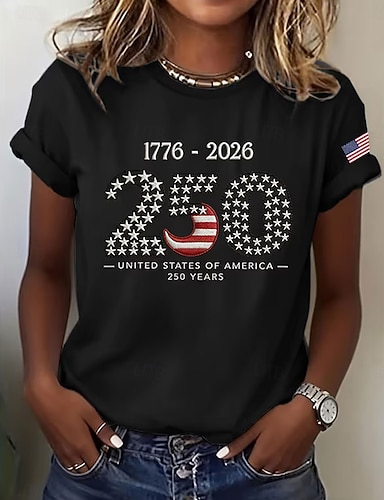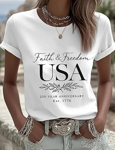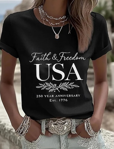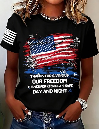 Amerikanischer Unabhängigkeitstag Damen T Shirt Druck Grafik Buchstabe Amerikanische Flagge Stilvoll Klassisch Lässig Kurzarm Rundhalsausschnitt Normale Oberteile Täglich Schwarz Weiß Rote Sommer