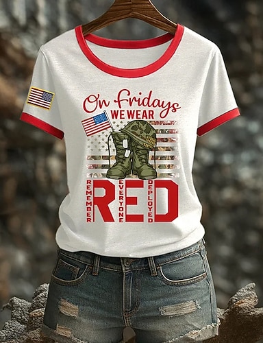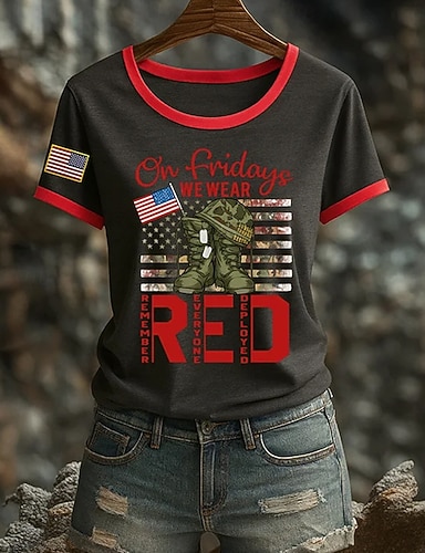 Amerikanischer Unabhängigkeitstag Damen T Shirt Druck Grafik Buchstabe Amerikanische Flagge Vintage Stilvoll Klassisch Kurzarm Rundhalsausschnitt Normale Oberteile Täglich Schwarz Weiß Rote Rot