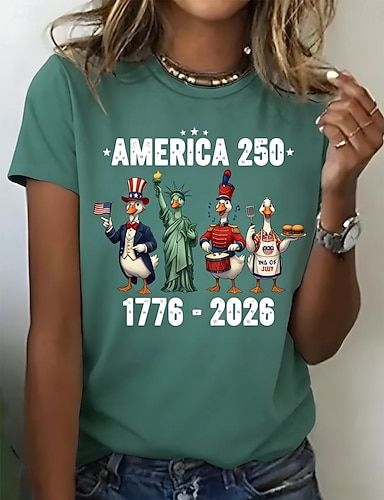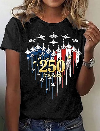 Unabhängigkeitstag Amerikanisches Jubiläum Patriotische Damen T-Shirt Druck Grafik Flagge Stylisch Klassisch Lässig Kurzarm Crewneck Rundhalsausschnitt Reguläre Oberteile Alltag Blau Schwarz Rot Grün