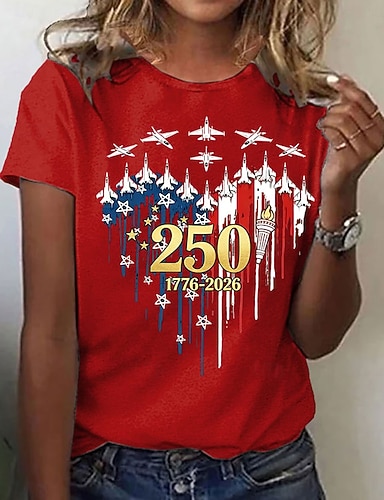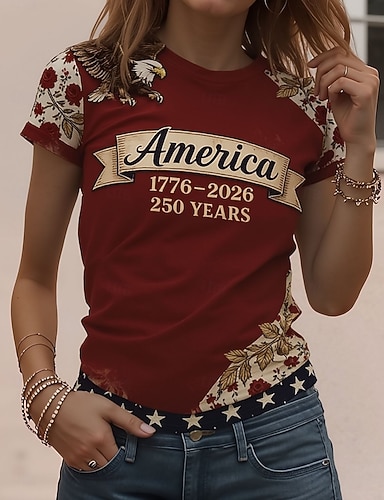 Amerikanischer Unabhängigkeitstag Damen T Shirt Druck Grafik Buchstabe Amerikanische Flagge Stilvoll Klassisch Lässig Kurzarm Rundhalsausschnitt Normale Oberteile Täglich Wein Rote Sommer Frühling