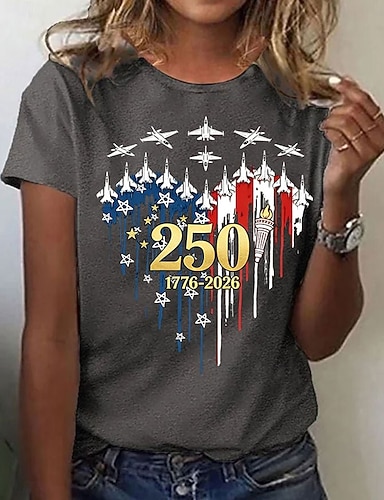 Amerikanischer Unabhängigkeitstag Damen T Shirt Druck Grafik Buchstabe Amerikanische Flagge Stilvoll Klassisch Lässig Kurzarm Rundhalsausschnitt Normale Oberteile Täglich Blau Schwarz Rote Grau