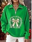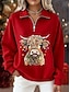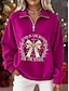Weihnachtspullover für Damen, grafisches Design, lässig, langärmelig, halber Reißverschluss, normale Passform, Alltagskleidung, Freizeit, Sport, rot, braun, khaki, beige, Herbst/Winter