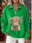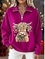 Damen Pullover Sweatshirt Grafik Kuh Lässig Langarm Halber Reißverschluss Normale Oberteile Alltagskleidung Lässig Sport Blau Rosa Rote Grün Herbst Winter