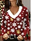Damen Pullover Sweatshirt Schneeflocke Lässig Langarm V Ausschnitt Normale Oberteile Straße Alltagskleidung Lässig Patchwork Druck Wein Herbst Winter