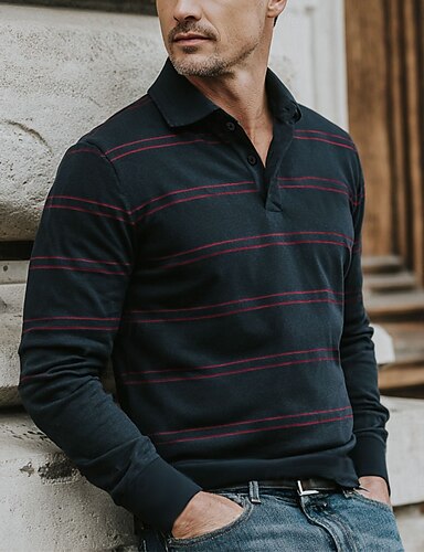 Herren Gestreift Rugby-Poloshirts Langarm Polo-Shirts Hemden mit Kragen Lässig Alltagskleidung Sport im Freien Sportbekleidung 3D-Druck Knöpfe Frühling Herbst Winter Blau Rote Armeegrün