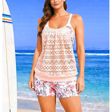 Damen Badeanzug mit Blumenmuster Badeanzug Tankini Blumen Elastisch Ärmellos Bademode Surfen Strand Urlaub Sommer