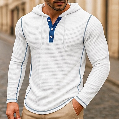 Herren Kapuzenpullover mit Waffelmuster T Shirt Waffel-Henley-Hemd Henley Hemd Langarm Mit Kapuze Henley Frühling Frühling & Herbst Einfach Mode Designer Basic Patchwork Mit Kapuze Urlaub Straße