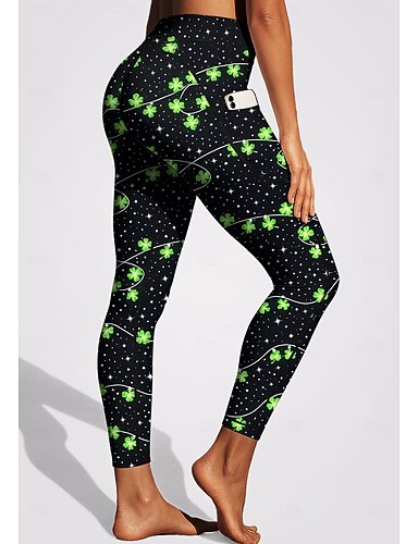 Damen Pilates-Leggings Fitnesshose Trainingsleggings Taschen Stempelsteuer Seitentaschen Pilates Fitnessstudio Fitnesstraining Hosen Strumpfhosen Leggings Galaxy-Print Purpur Sport Sportkleidung