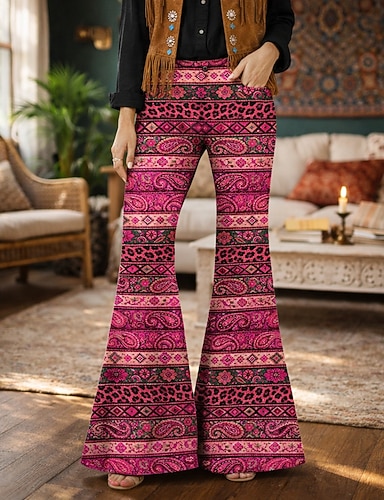 Retro Vintage Boho 1970er Lange Länge Hose Schlaghosen Hippie Disco Hohe Taille Blumen Kostüm Damen Maskerade Musikfestival Party Pride Parade Erwachsene Hose