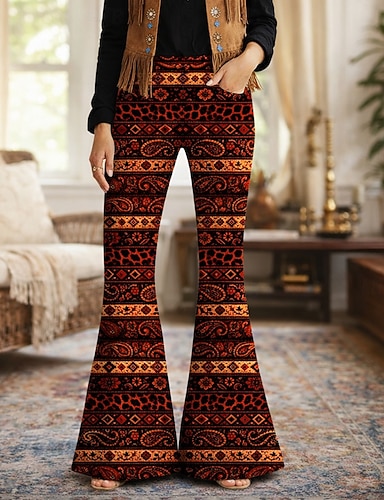 Retro Vintage Boho 1970er Hose Schlaghosen Hippie Disco Hohe Taille Blumen Kostüm Damen Halloween Karneval Musikfestival Retro-Mottoparty Erwachsene Hose