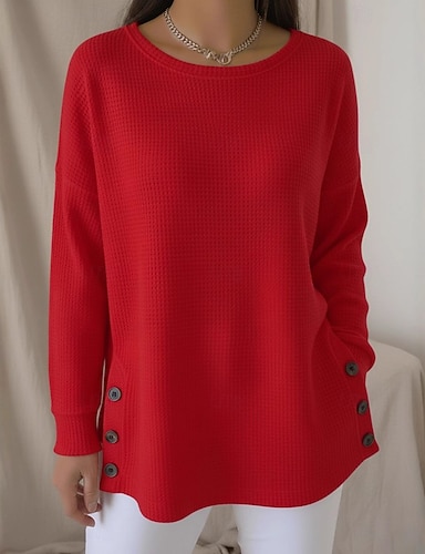 Damen Hemd Knöpfe Elegant Vintage Sport Langarm Rundhalsausschnitt Lange Oberteile Täglich Ferien Ausgehen Blau Weiß Rote Frühling Herbst Winter