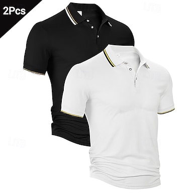 Mehrfachpackungen 2St Herren Revers Kurze Ärmel Grün + Weiß Polo mit Knopfleiste Golfshirt Golf Poloshirts Knöpfe Einfach Urlaub Alltagskleidung Polyester Sommer