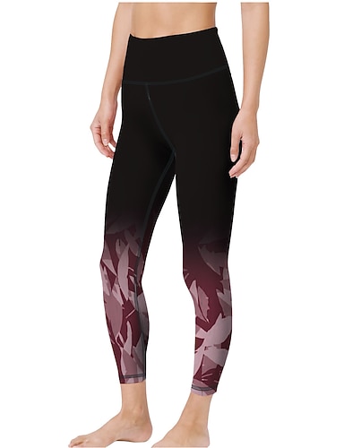 Damen Gym Sport leggings Yogahose Hoher Taillenbund Elasthan Grün Purpur Rot Kurz geschnittene Leggings Blumen Bauchkontrolle Kolbenheber Kleidung Yoga Fitness Fitnesstraining Laufen / Hochelastisch