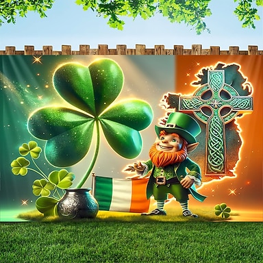 St. Patricks Day Tapisserie Banner Decke Elf Kleeblatt Niedlich Romantisch 3D Schlafzimmer Wohnzimmer Wohnheim Jugendzimmer Studentenwohnheim Wandveranda Wohndeko