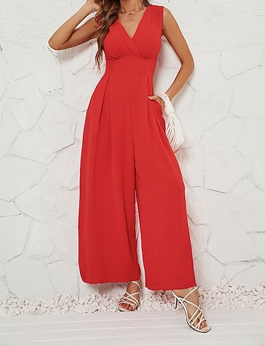 Damen Overall Aktiv Einfarbig Ärmellos Weites Bein V Ausschnitt Tasche Täglich Urlaub Normale Passform Schwarz Armeegrün Rote Sommer