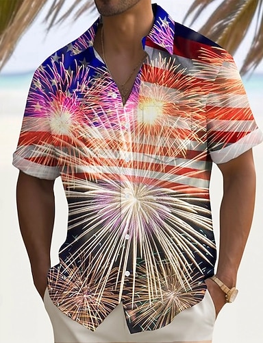 4. Juli 2026 250. Herren Amerikanische US-Flagge Polo Langarm Polo-Shirts Revers Lässig Outdoor Athleisure Festival-Outfit 3D-Druck Knöpfe Frühling Herbst Blau Rote Purpur