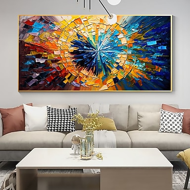 Handgefertigtes Original-Ölgemälde mit Farbblock auf Leinwand, Wandkunst-Dekor, abstraktes Landschaftsgemälde für Heimdekoration, mit gespanntem Rahmen/ohne Innenrahmen