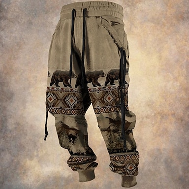Herren Bär Cowboy Jogginghose Trainingshose Jogginghose Jogger Hosen Hose Mittlere Taillenlinie Elastischer Kordelzug in der Taille Vintage Brautkleider schlicht Outdoor Strasse Alltagskleidung Tasche